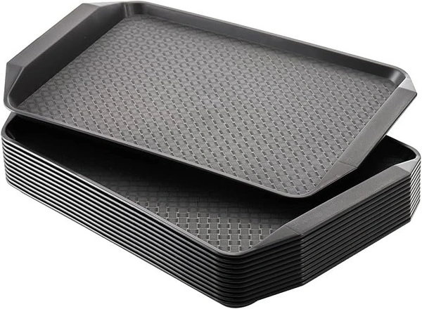 Food Trays for Eating, 17IN x 11.7IN Black Restaurant Serving Trays with Handles